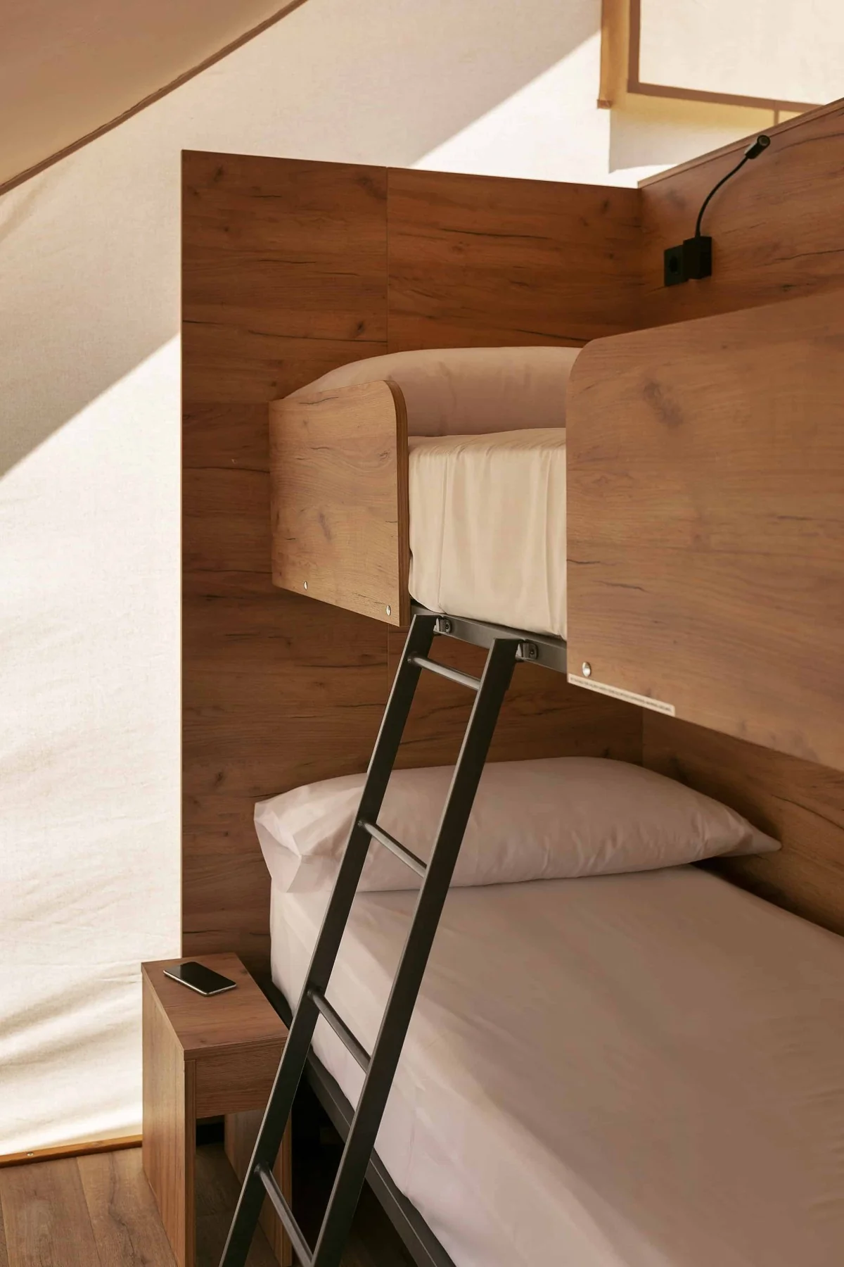 Glamping Family, per a fins a 6 persones, és l'opció ideal per a grups. La seva infraestructura equipada i atmosfera àmplia dividida per un altell destaca pel seu confort i espai.